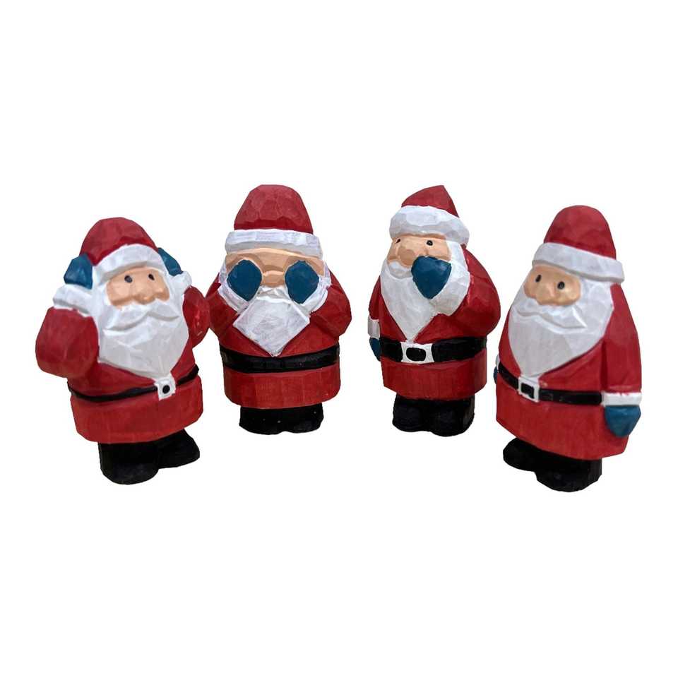 YEEYAYA Set di 4 Sculture in Legno di Babbo Natale, Statuette Intagliate a Mano per Decorazioni Natalizie e Regali