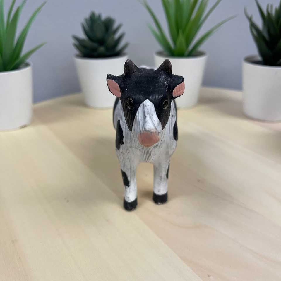 YEEYAYA Hand Carved 5\" Wood Sculpture Christmas Figurine & Home Decor Cow Statue Room Decor Farm Animals Zoo Concept