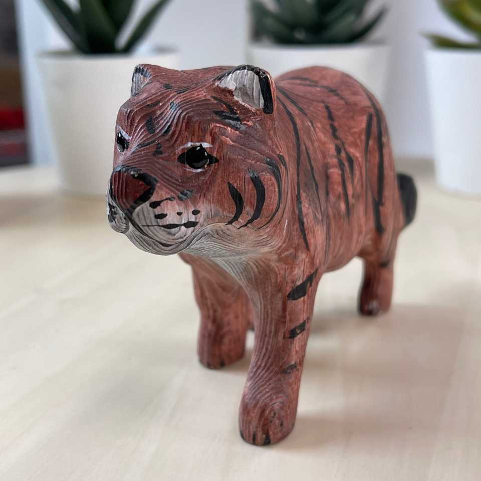 Statua di Tigre Intagliata a Mano YEEYAYA, Decorazione per la Casa, Statuette in Legno, Statua di Animali Selvatici per Zoo, Regalo di Natale, Artigianato in Legno di Bambù