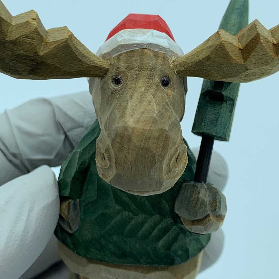 YEEYAYA scultura in legno intagliato a mano alce cervo cervo figurina renna di natale allegra giocattoli in legno fatti a mano