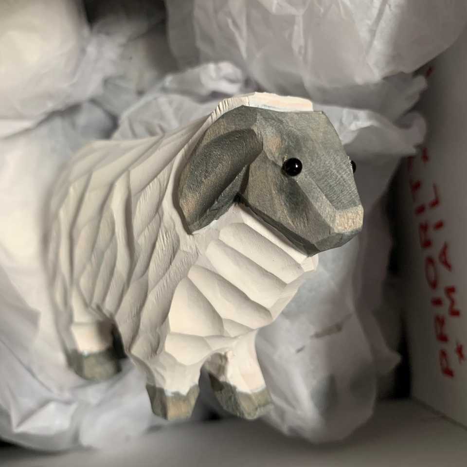 YEEYAYA Handmade Brass Sheep Wooden Sculpture Woodcarving Figurine Lamp Wood Figures Unique Hand Carved Design