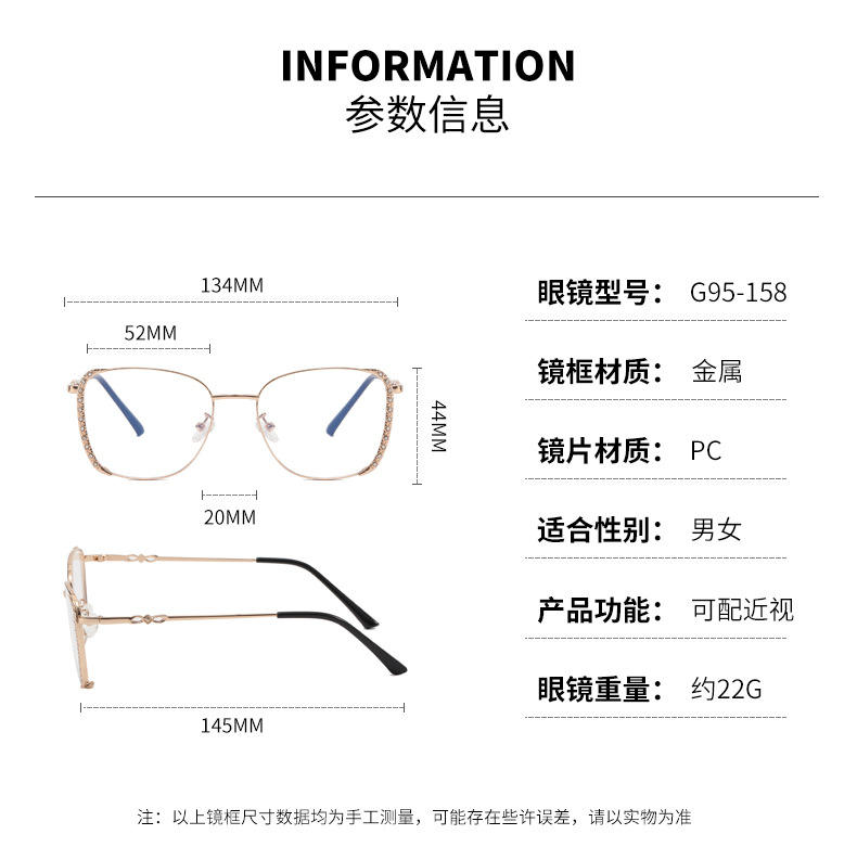 YFG95-158 Golden Oversized Metal Eyeglass Frame Optical Women Glasses High Quality Anti Radiation Blue Light Glasses
