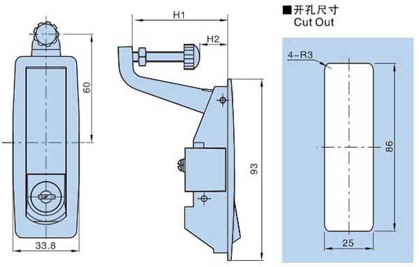 YH9593 Keyless Interior Security Lock Cylinder Zinc Alloy Door Handle Panel for Electrical Cabinet Box