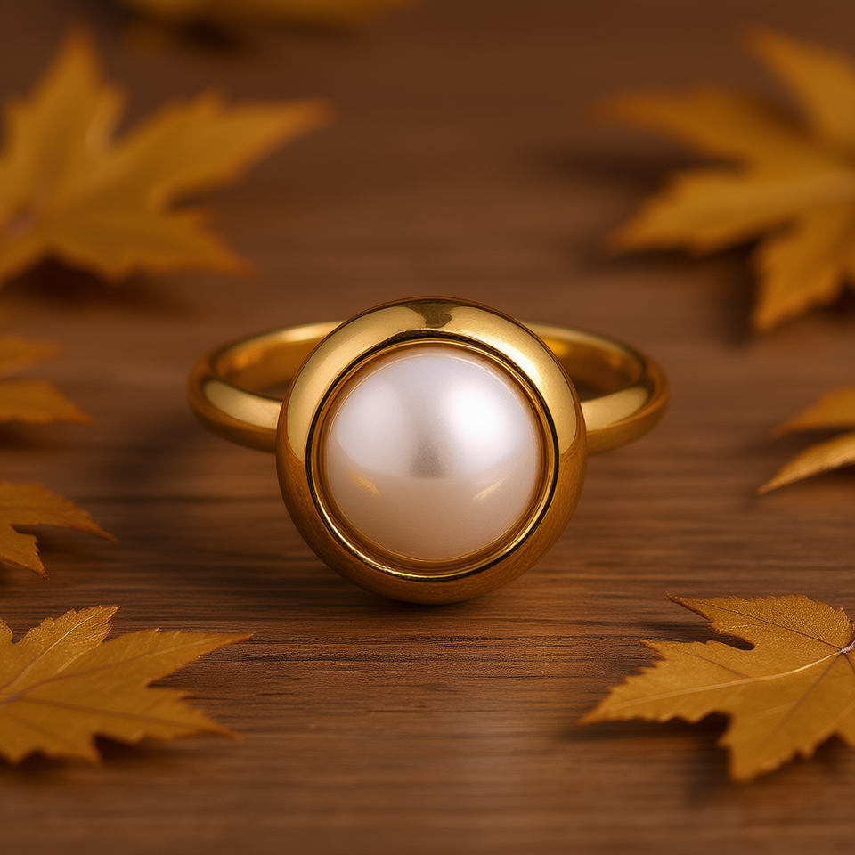 YHL Luxury-Style Women's Adjustable Ring R40 Pearl & Stainless Steel for Autumn Winter Fashion Jewelry