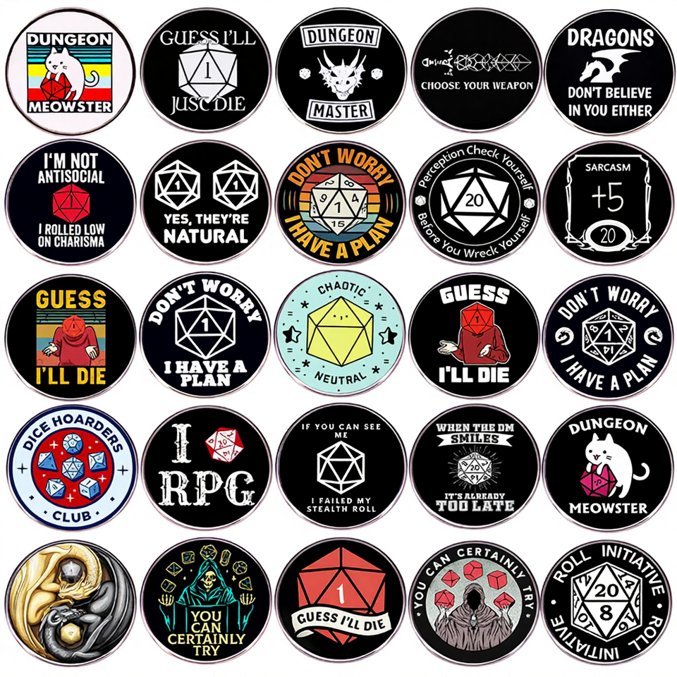 Spilla Drago YHY D&D in Metallo, Lega di Zinco, Insegna D20, Accessorio Gioiello per Borse e Regali