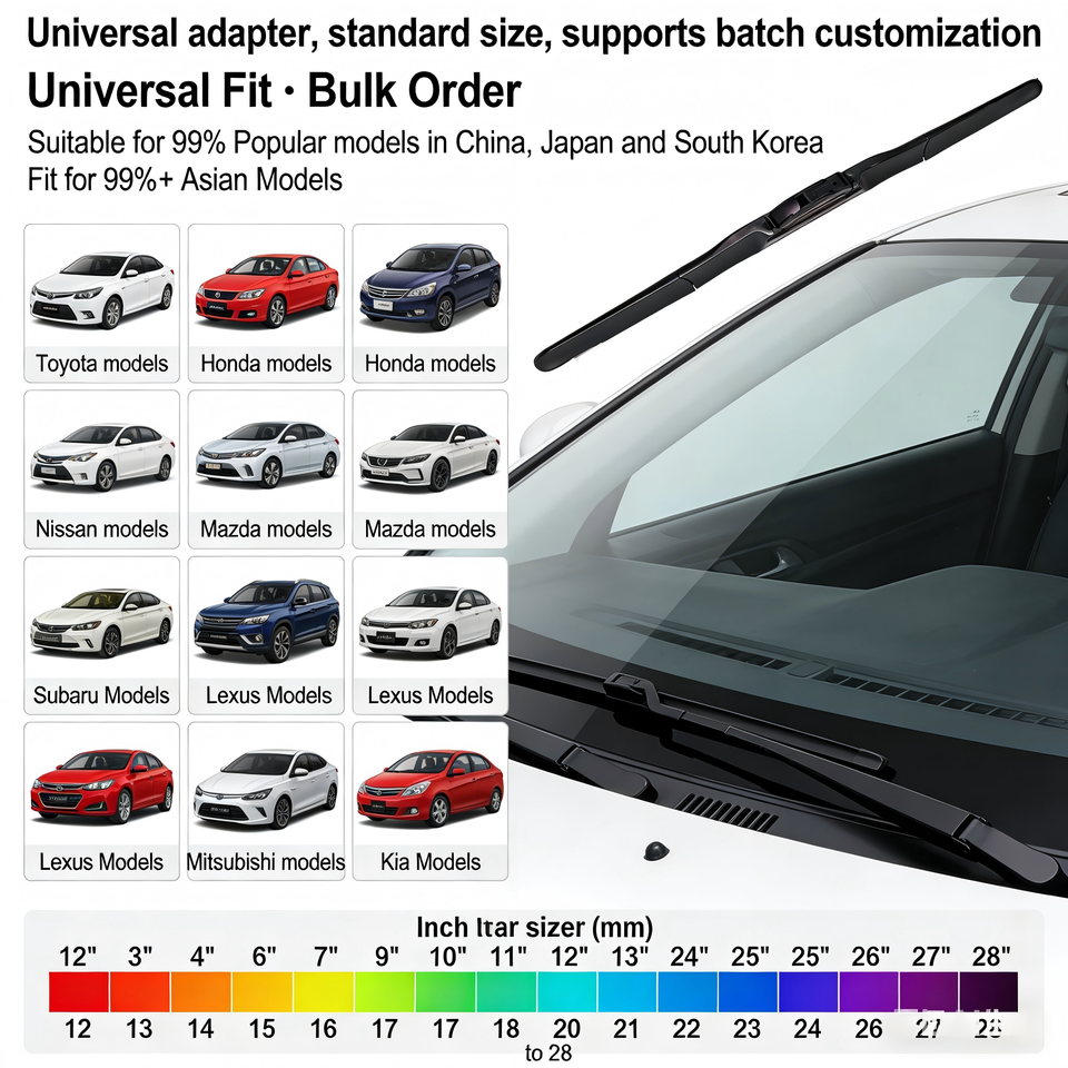 Spazzola Tergicristallo Universale YIKE in Gomma Naturale Senza Telaio per Auto con Guida a Sinistra CORSA CORolla Mercati Internazionali