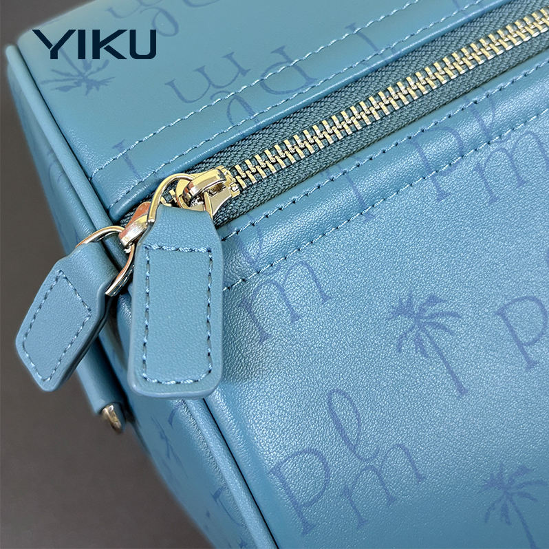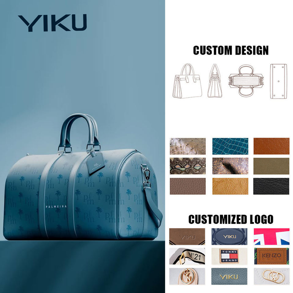 Borse da Viaggio in Pelle Blu Grande con Logo Personalizzato YIKU, Borse Weekender Unisex per Uomo e Donna, Borsa Bagaglio