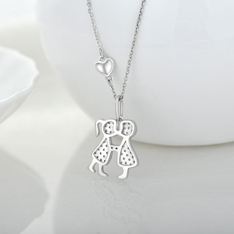 YILUN Collana con Ciondolo a Due Ragazze in Argento Sterling 925 Placcato Rodio, Gioiello Impermeabile per Amicizia e Sorellanza