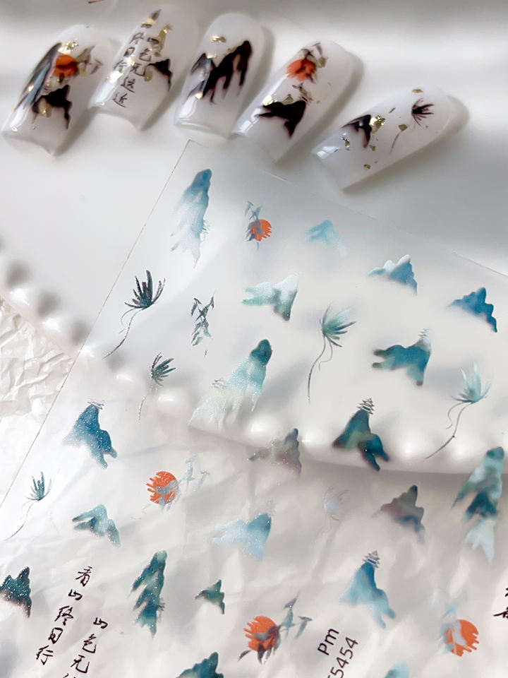 YITU formica mappa 3D giardino piatto paesaggio Nail Art adesivi testo semplice gru decorazione in stile cinese YT5452