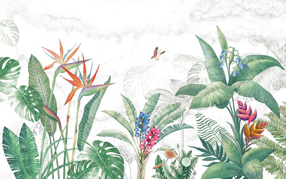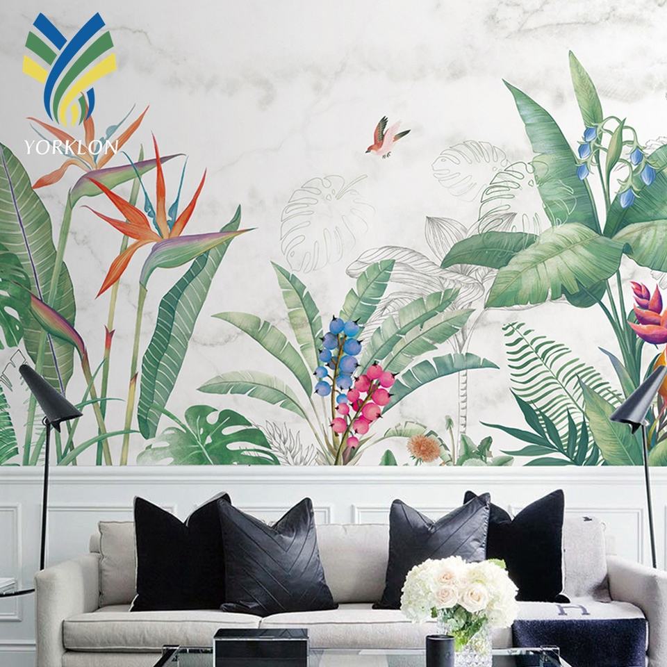 YKWS 028 Green Leaf 3D Floral Design Mural Wallpaper Modern Nature Flowers Birds Floral Wall Paper Waterproof Modern Style