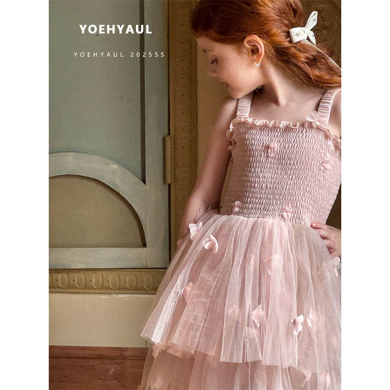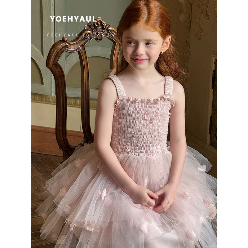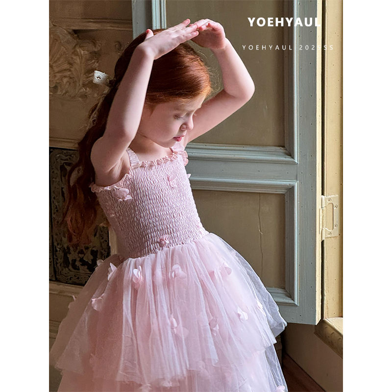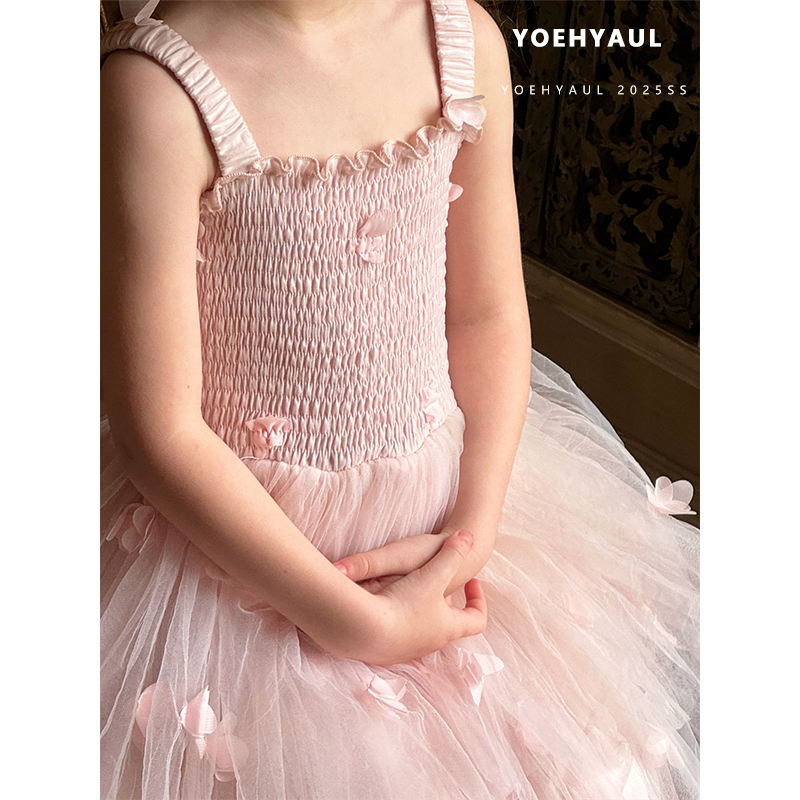 YOEHYAUL 25035 Summer Cotton Lining Pink Elegant Flower Kids Smock Dress Baby Girls Tulle Sweet Child Princess Dress for Girl