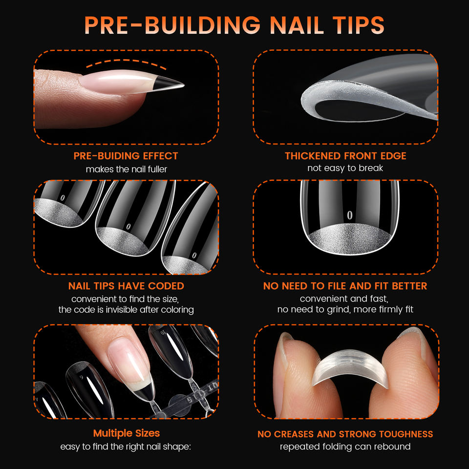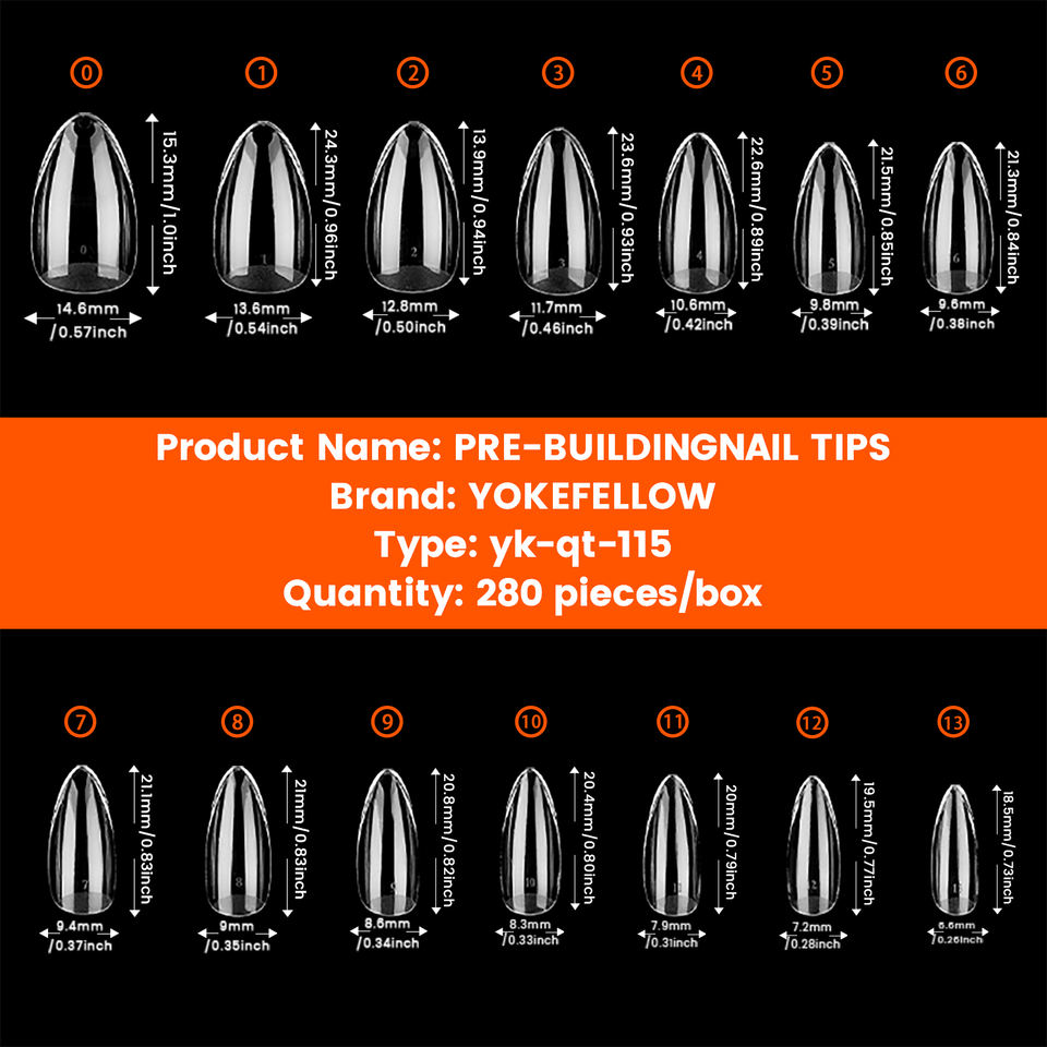 YOKEFELLOW mandorla Pre-costruzione 14 taglie con copertura completa punte per unghie trasparenti 280 pz punte in Gel morbido per Manicure