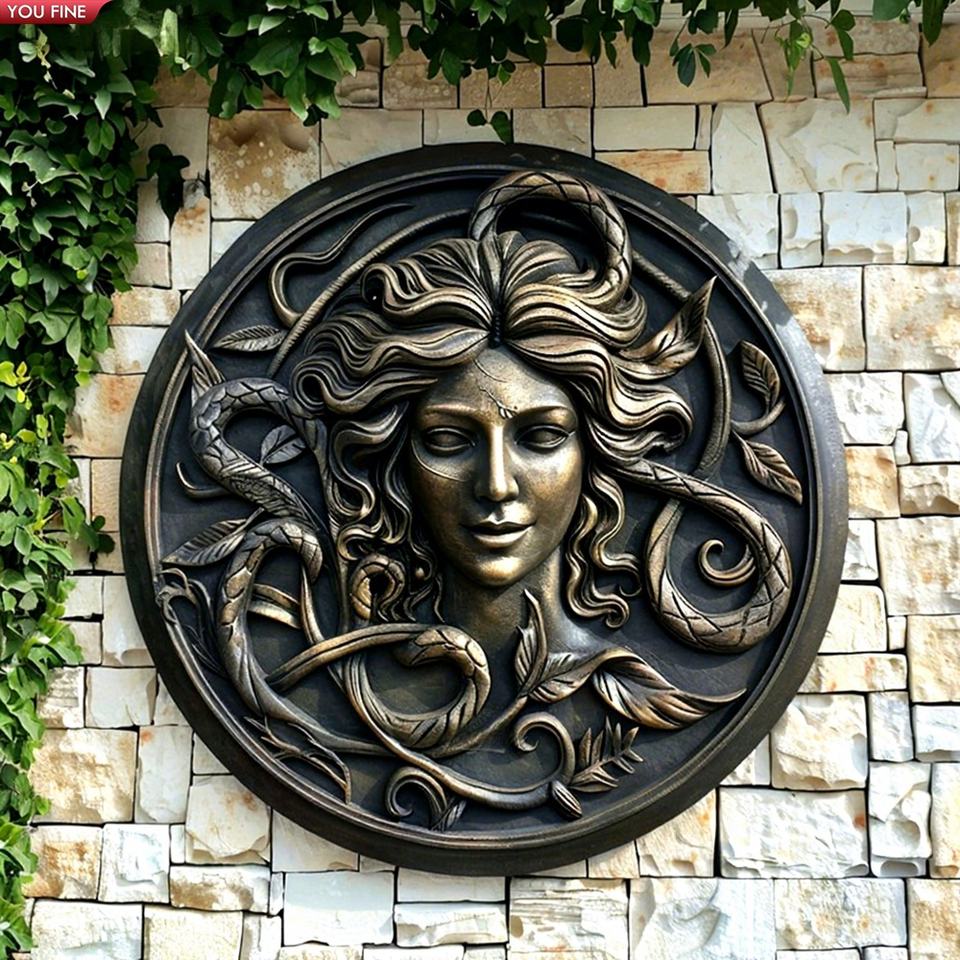 YOUFINE Antique Bronze Medusa Head Relief Wall Plaque Art for Luxury Home Garden Wall Decor