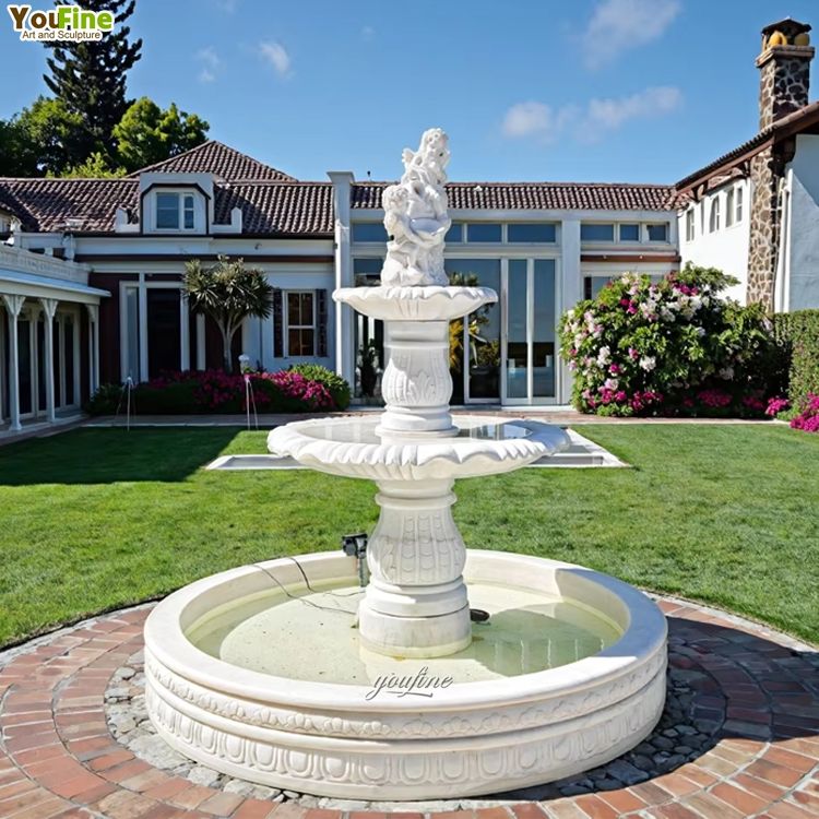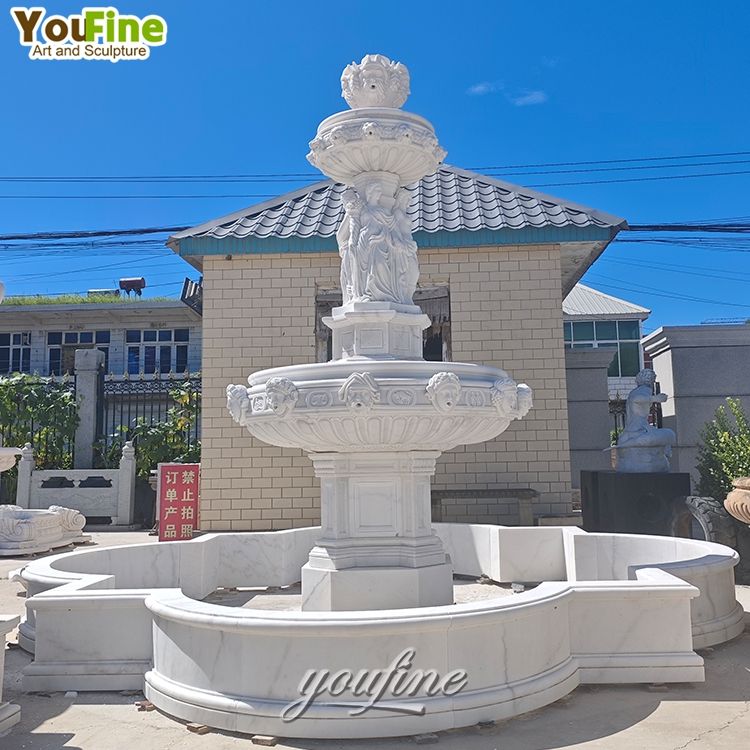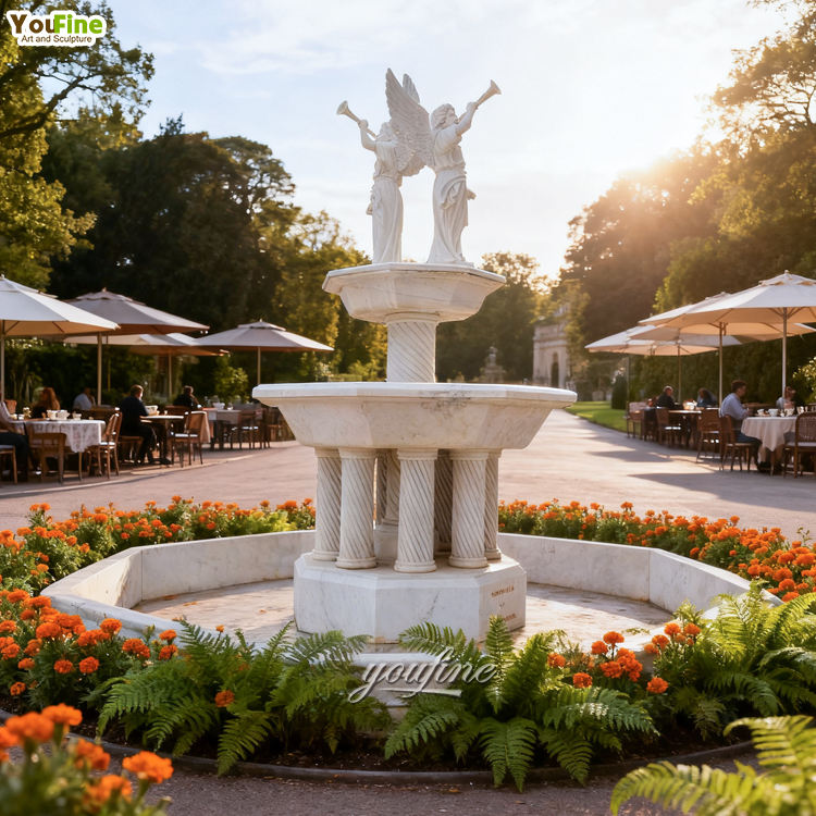 YOUFINE European Garden Ornaments High Quality Natural Modern Outdoor White Garden Outdoor Marble Angel Water Fountain