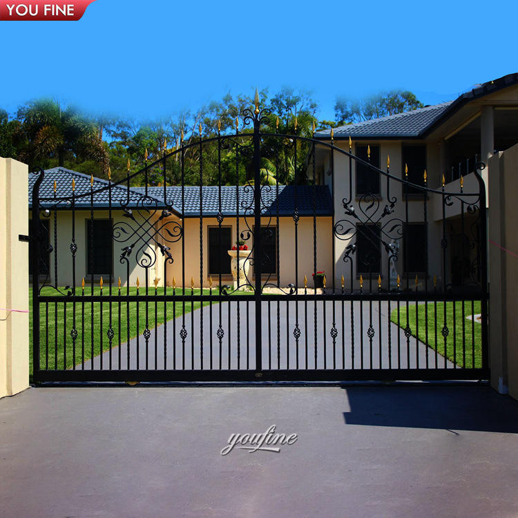 Durable and Eco-Friendly Design: The Modern Wrought Iron Double Driveway Gate Designs are crafted from high-quality cast iron, powder-coated for a long-lasting finish, and are eco-friendly, making them an excellent choice for environmentally conscious buyers.