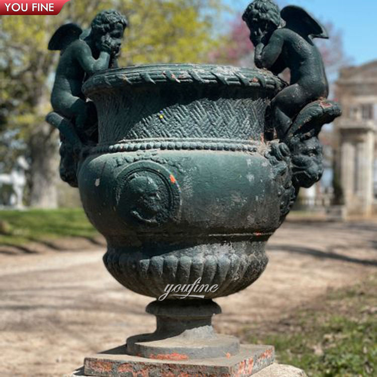 Vaso Fioriera da Giardino YOUFINE in Bronzo Verde a Forma di Cherubino per Decorazione Paesaggistica di Ville e Cortili