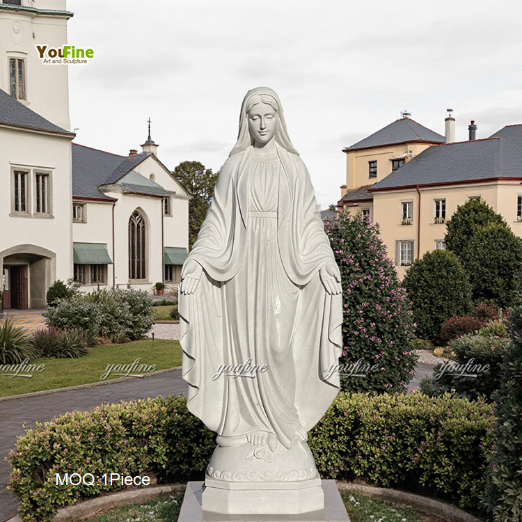 YOUFINE Statua della Vergine Maria in Marmo Bianco a Grandezza Naturale per Decorazione di Giardini e Chiese Cattoliche