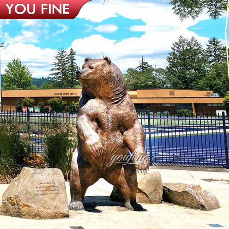 YOUFINE Monumental Wildlife Outdoor Garden Large Size Lifelike Brass Bronze Grizzly Bear Standing Statue