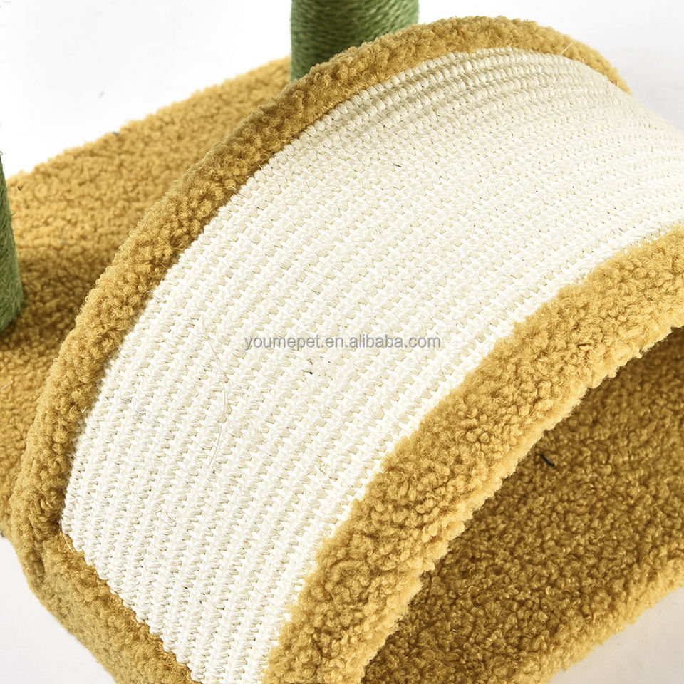 YOUME Albero per Gatti in Stile Moderno in Compensato a Forma di Cactus con Tunnel e Superficie Arrotondata per Tirare, Gioco Interattivo Certificato ISO e BSCI