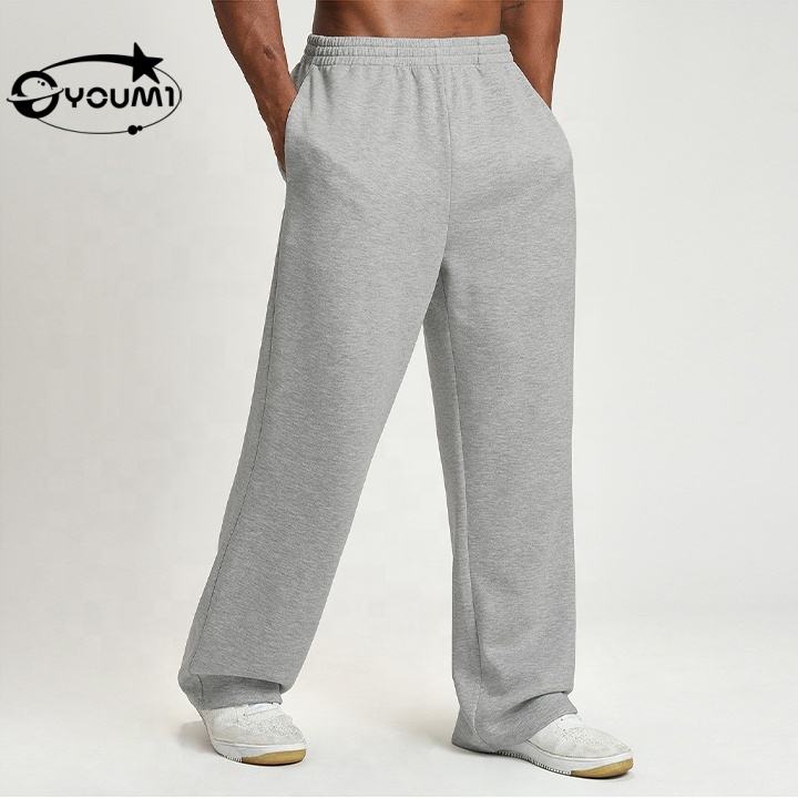 YOUMI Custom OEM Service Casual Blank Fitness Straight Leg Elastic Polyester / Cotton Sport Sweatpants Men's Athleisure Pants