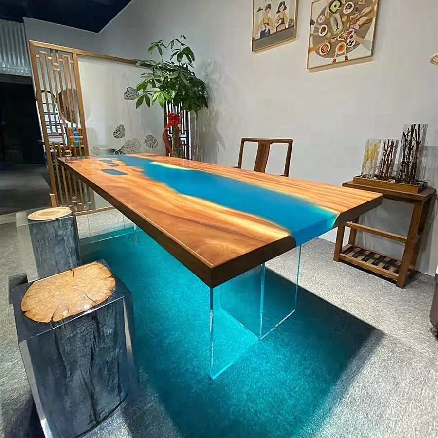 YOUTAI Special Luxury Modern Custom Ocean Long Solid Top Walnut High End Design Wood Dining River Resin Epoxy Tables