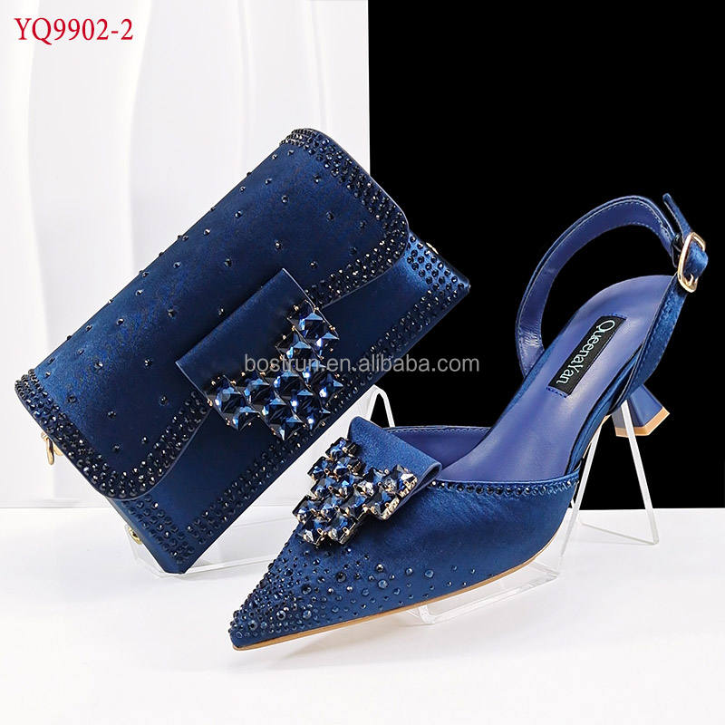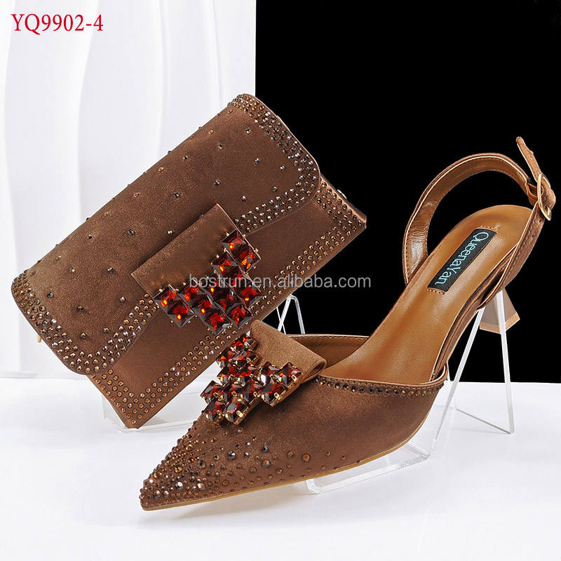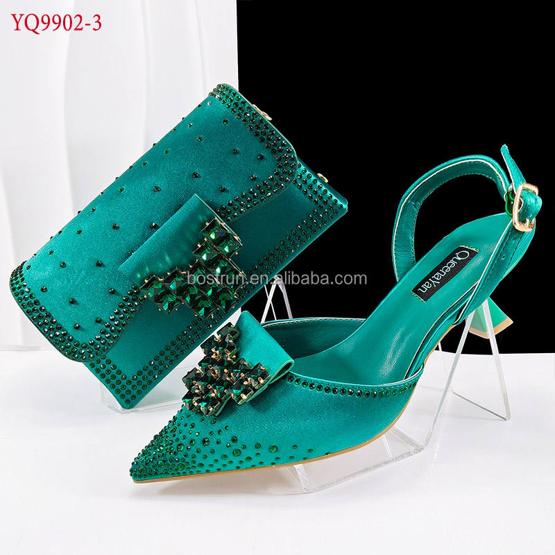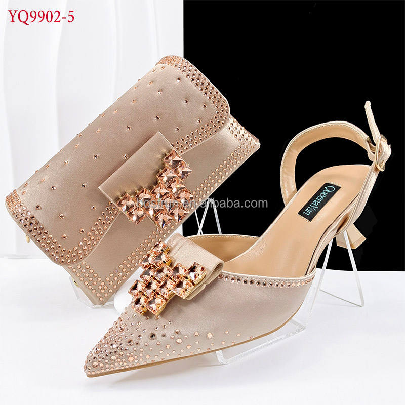 YQ9902 Elegante Sandalo da Cerimonia/Festa con Borsa, Set di Scarpe e Pochette con Pietre in Rosso, Altezza Tacco