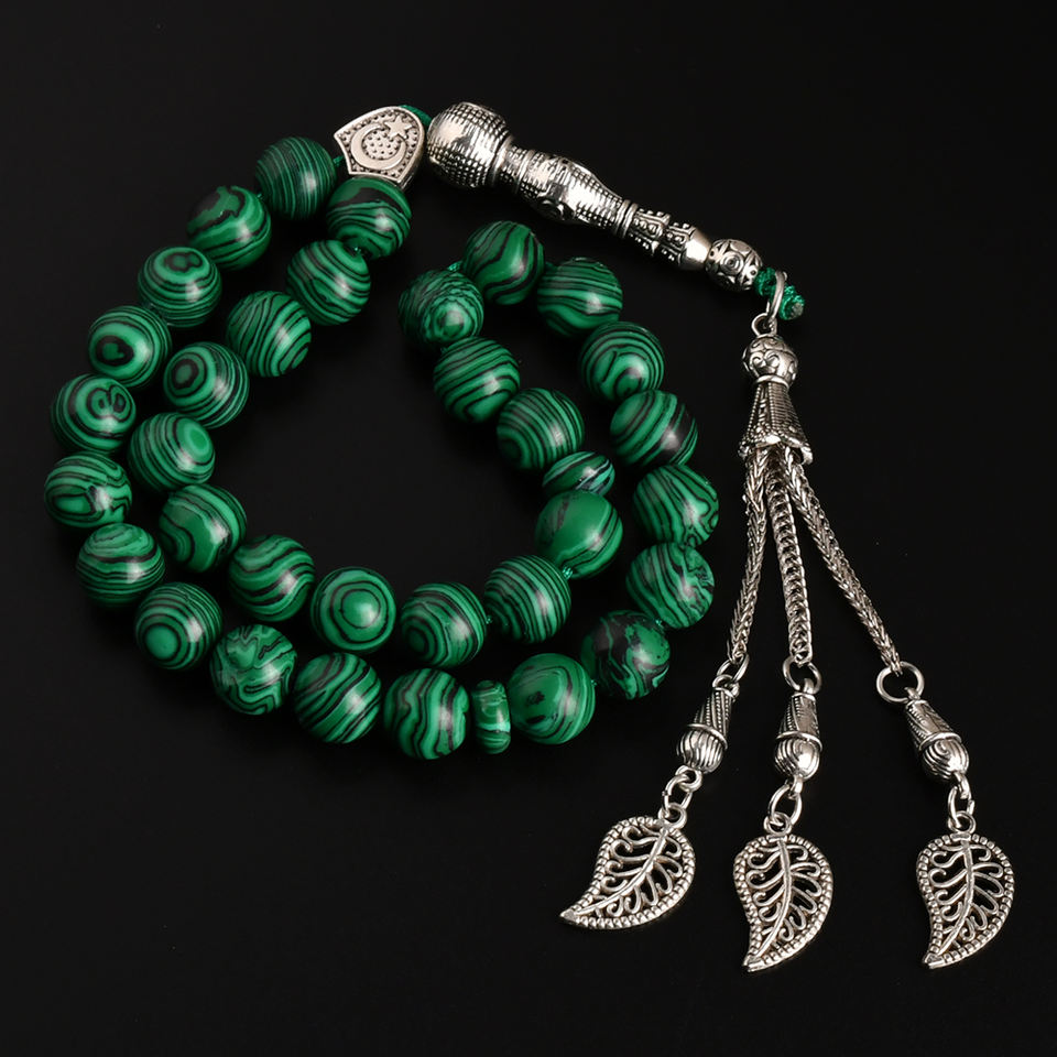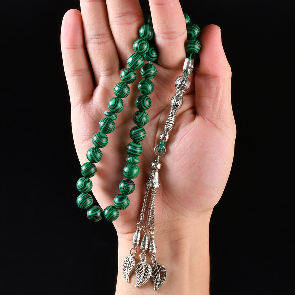 YS322 8mm Malachite Stone Tasbih Allah Mohammed 33 Prayer Beads Islamic Rosary Necklace
