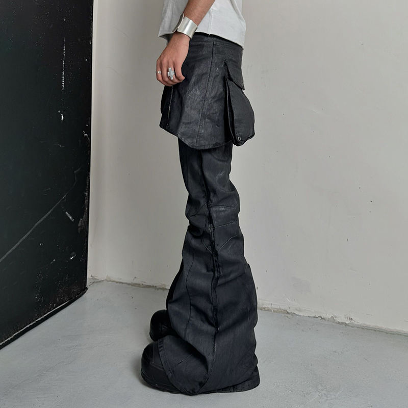 Pantaloni Cargo da Uomo YSJY in Morbida Pelle Nera con Logo Personalizzato, Vestibilità Slim Casual da Moto con Tasche