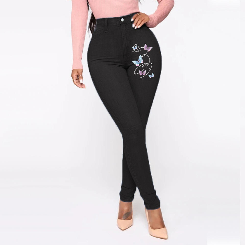 YSMARKET S-3XL Stretch Embroidered Jeans for Women Elastic Flower Jeans Female Pencil Denim Pants Plus Size