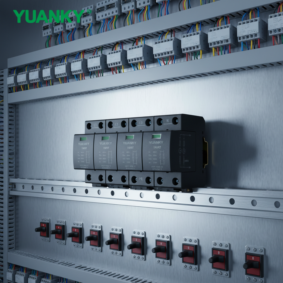 YUANKY 1P/2P/3P/4P AC Voltage 80RT T2 20RT SPD 60/80/100/160KA Surge Protective Device Din Rail Mounted Lightning Arresto