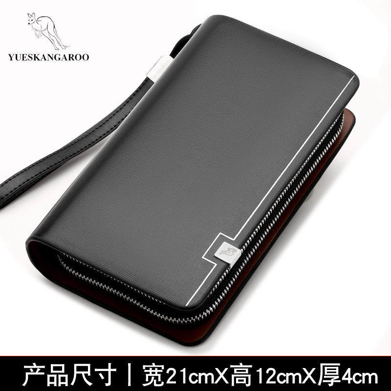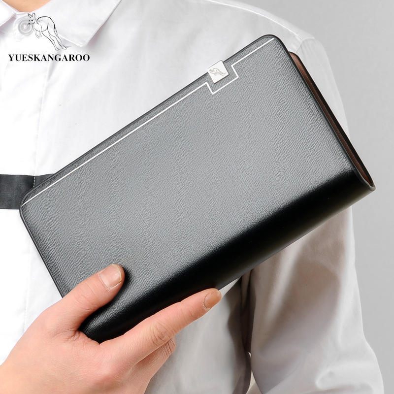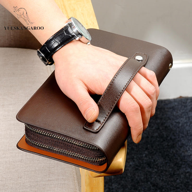 YUESKANGAROO Brand Men Clutch Bag Fashion Leather Long Purse Double Zipper Business Wallet Black Brown Male Casual Handy Bag