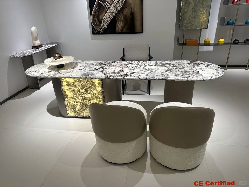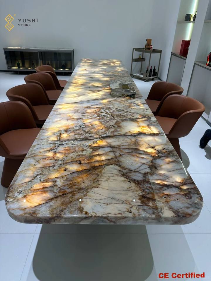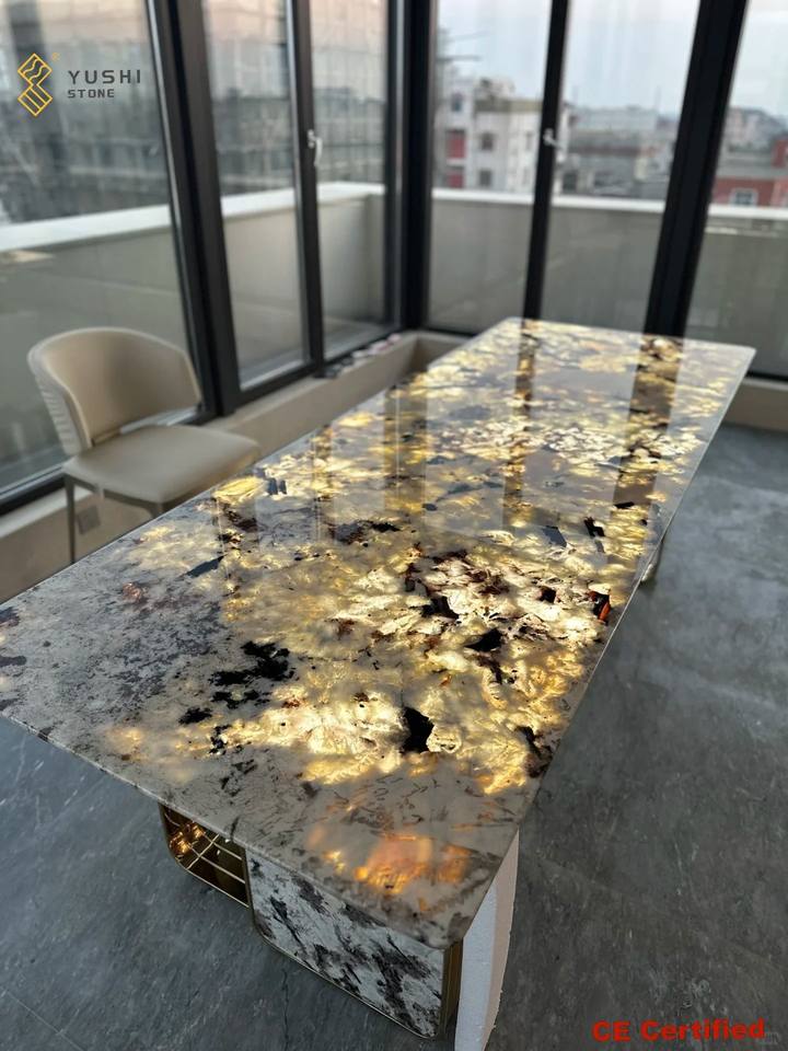 YUSHI Luxury Modern Patagonia Quartzite Dining Table Top Waterproof Feature for Hotels Commercial Spaces Dining Room Furniture