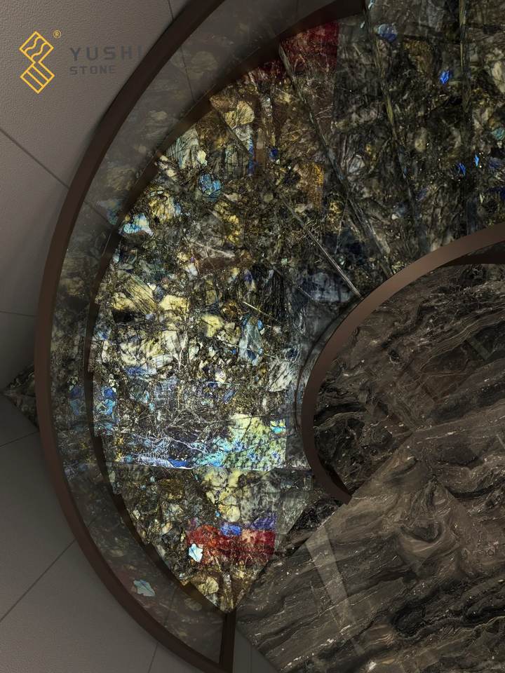 YUSHI di lusso naturale lucidato Labradorite lastre di granito blu per la decorazione di interni Hotel di lusso