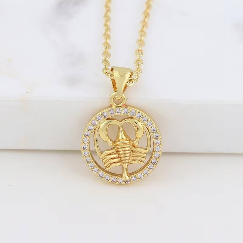 YWLY Zodiac Necklace 18K Gold Jewelry Women Fashion Gold Filled Crystal Rhinestone Zodiac Sign Necklace Zodiac