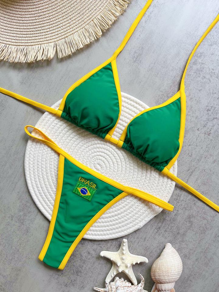 YWXH-RT2505 donna alla moda Design triangolo Bikini stampa bandiera brasiliana costumi da bagno Bikini Designer Bikini