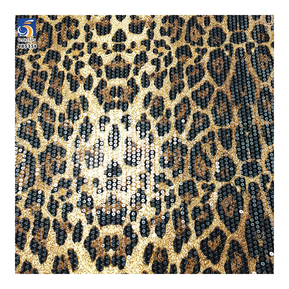 YX535-1 Tessuto Leopardato Best Seller, Larghezza 140cm, Peso 180gsm, Tessuto Chiffon con Paillettes, Design Leopardato Stampato