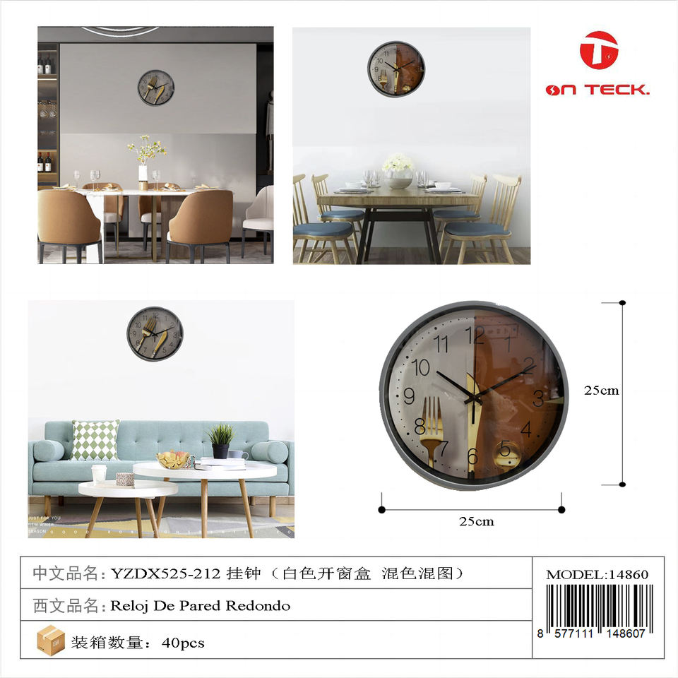 On Teck Sa De Cv Wall Clock Modern Round Analog Quartz Metal Plastic Living Room Home Decor 12 Units YZDX525-112