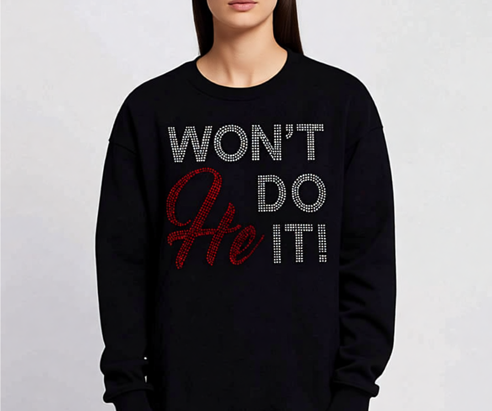 YZX Factory Verified Custom Eco-Friendly Iron-On Rhinestone Transfer Motif Garments 'Won't He Do It' Design Hot-Fix Technique
