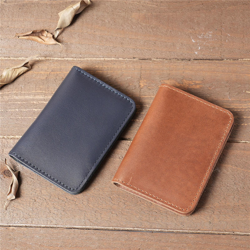 Ya475 portafoglio di carte in pelle di vacchetta sottile fatto a mano minimale per gli uomini