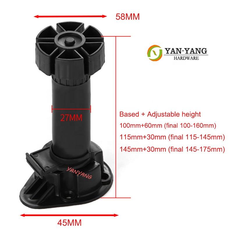 Piedini Regolabili Yanyang 11.5-14.5cm in Plastica Nera ABS, Facili da Montare, per Mobili e Cucina, per Soggiorno