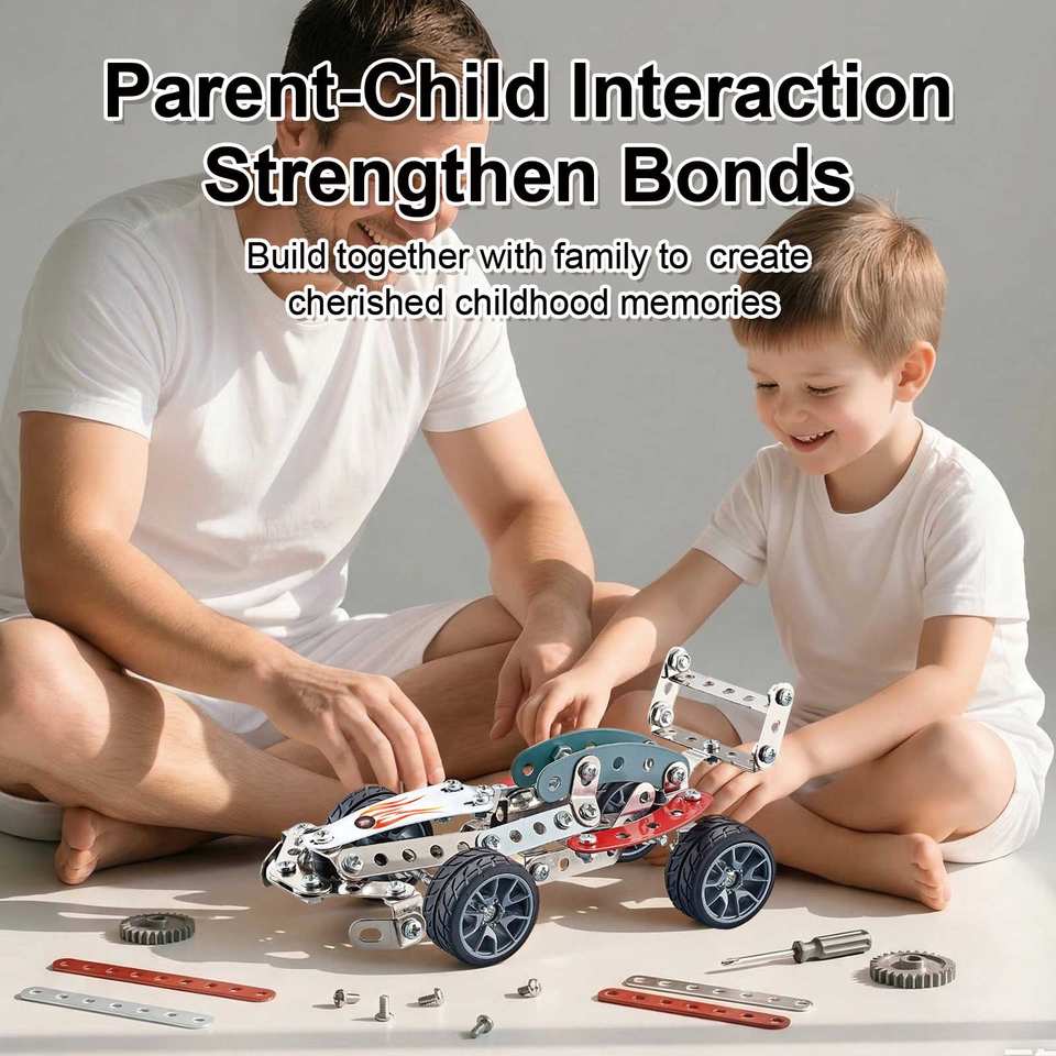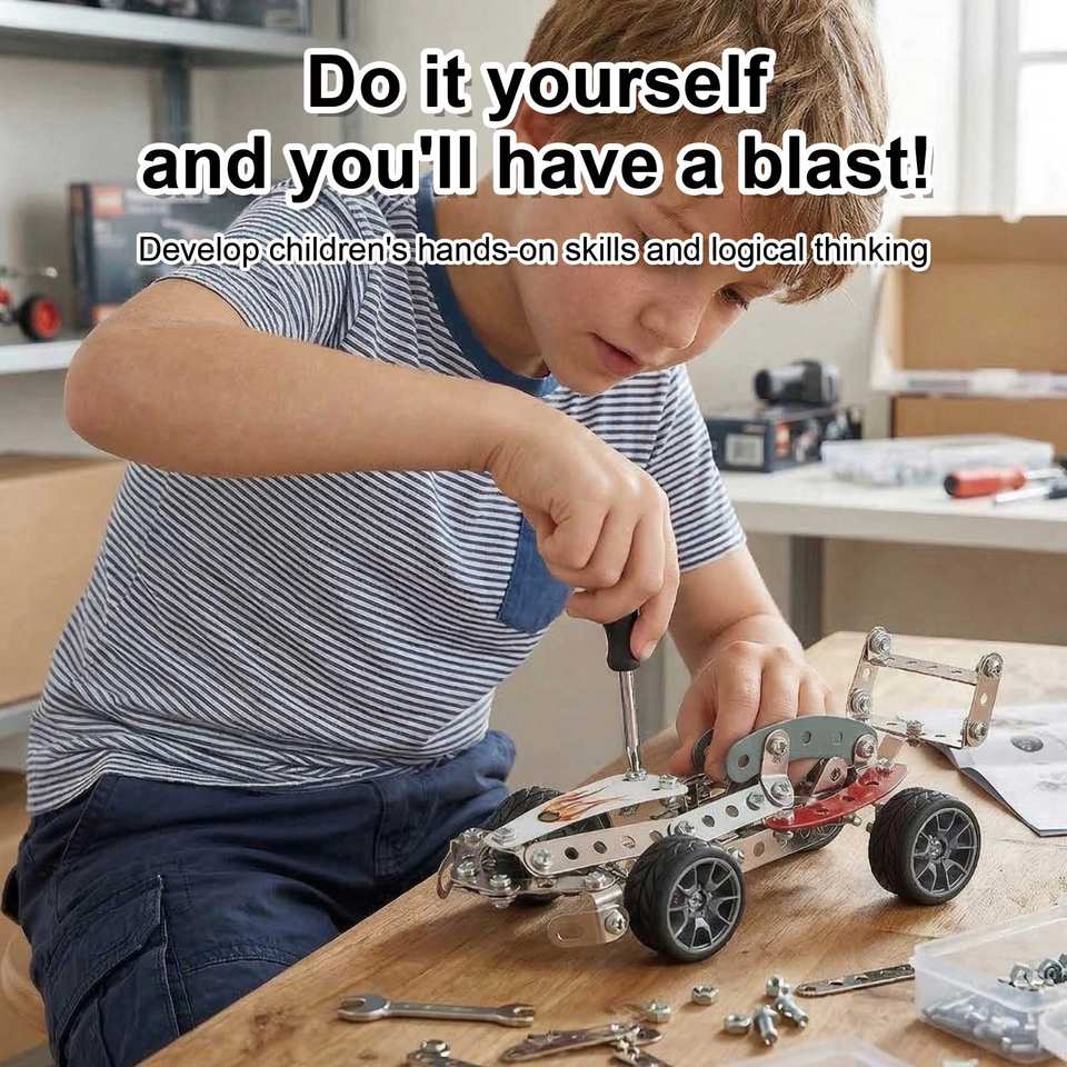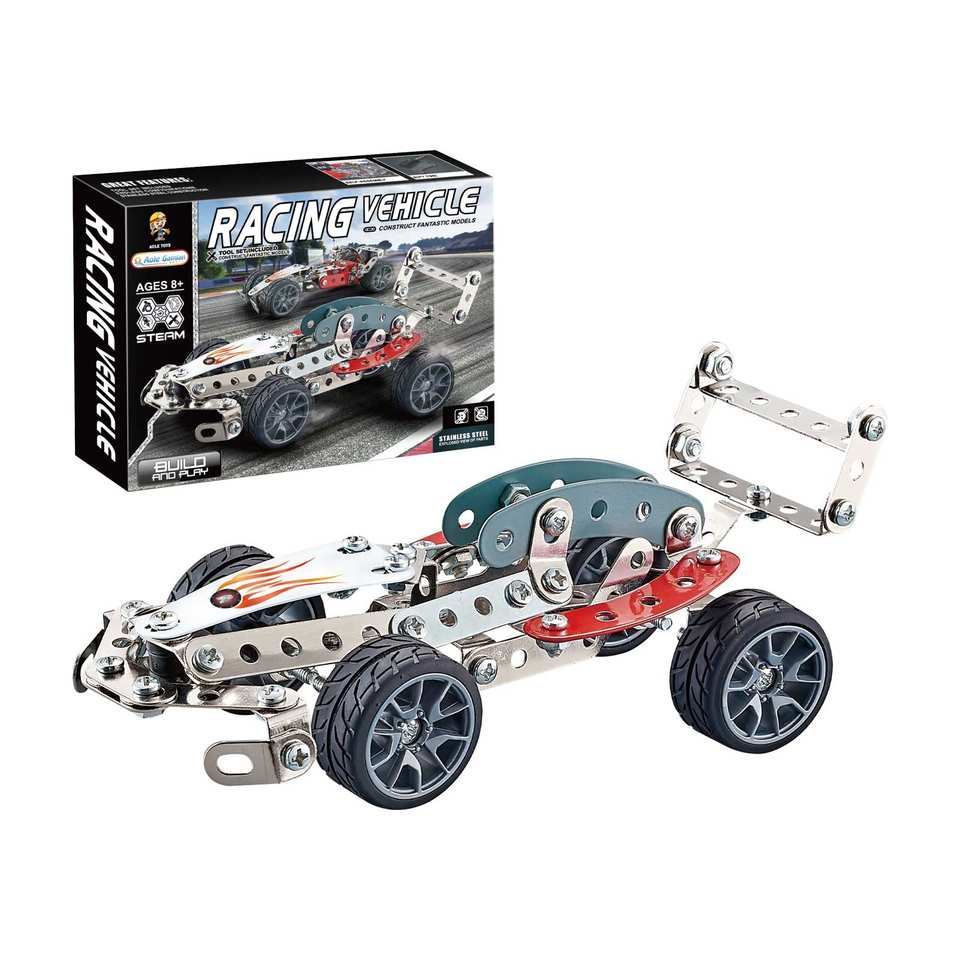 Kit di Costruzione in Metallo Yaxin Fai-da-Te, 146 Pezzi, Set STEM per Modellini di Auto da Corsa per Ragazzi
