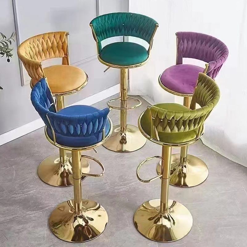 Yazhi Nordic Tall Counter Furniture Gold Metal Velvet pink Luxury Kitchen Leather Modern High Stool Bar Chairs for Bar Table