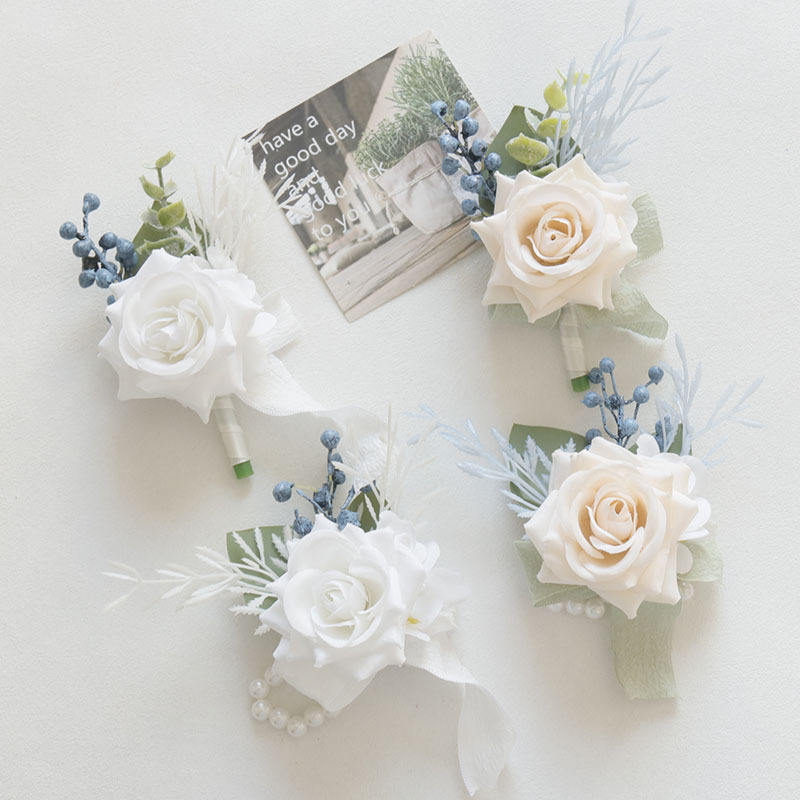 Ychon Bridal Custom Artificial Flower Groom Corsage and Boutonniere Set Men Corsages Bride Rose Wrist Hand Flower for Wedding