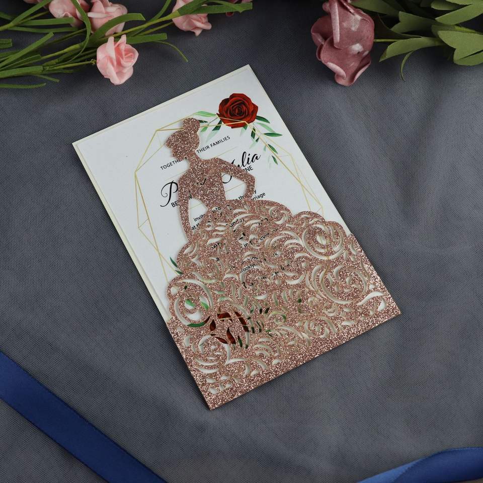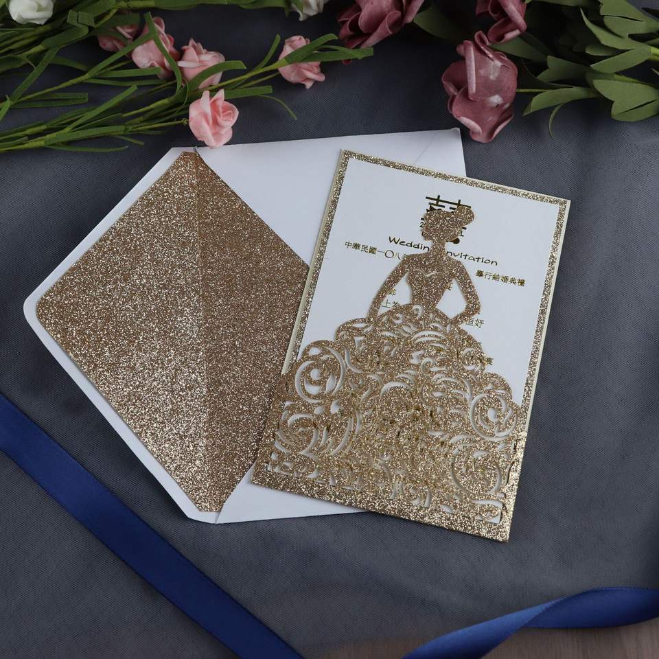 Ychon inviti personalizzati in Glitter oro con busta glitterata e biglietti d'invito per il compleanno abito da sposa Set invito