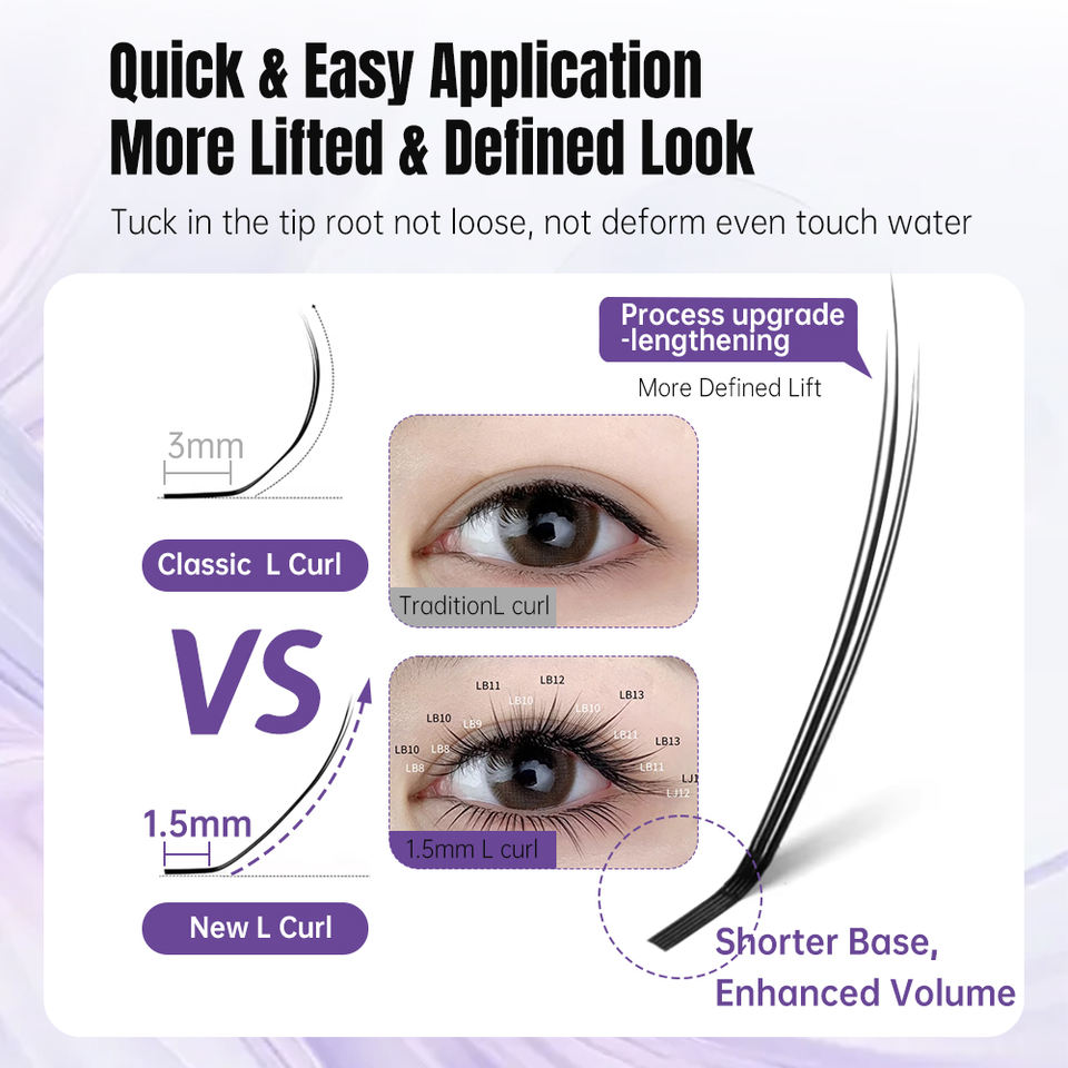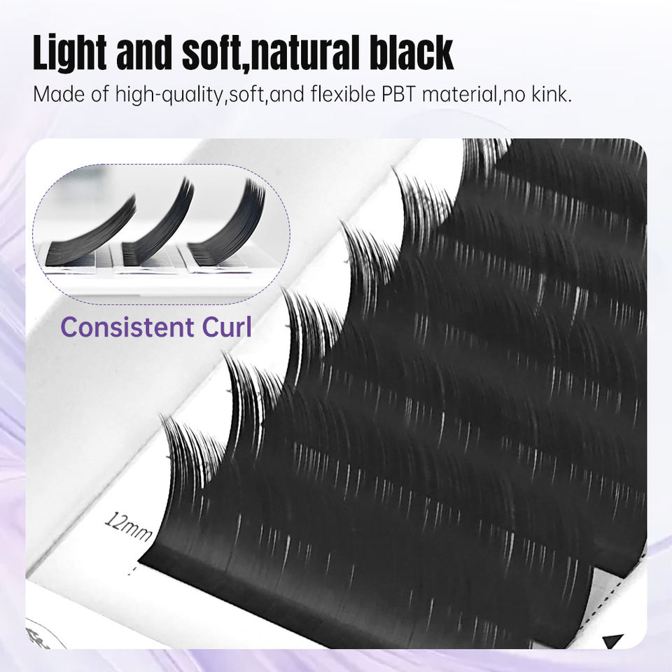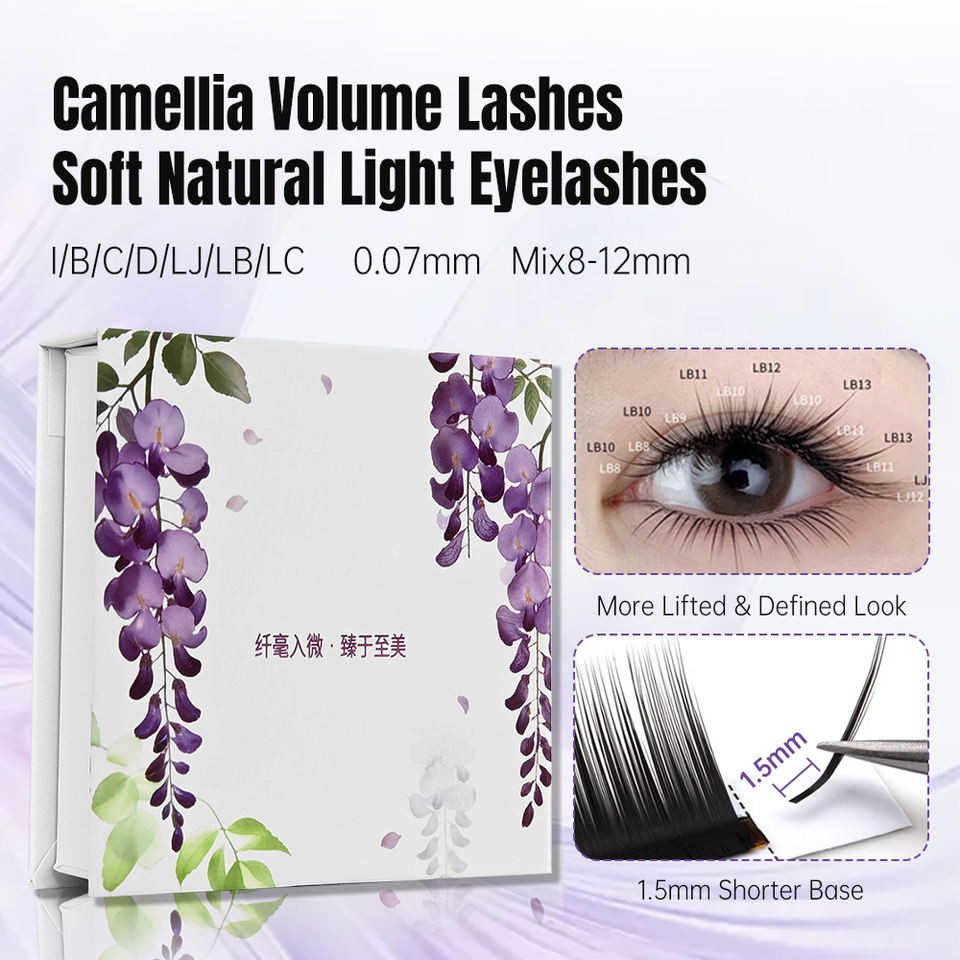 Yelix Ciglia Camelia di Alta Qualità 0.07 LB/LJ/B/C, Extension Ciglia a Ventaglio Facile, Mega Volume, Ciglia Naturali a Ventaglio Automatico, Vassoi di Ciglia