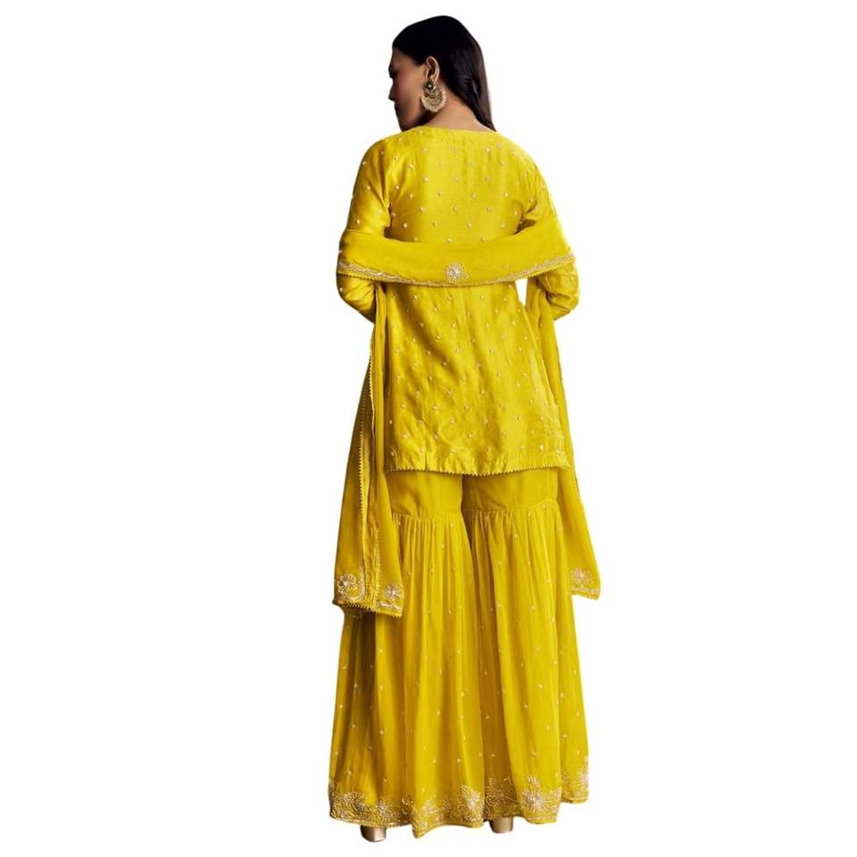 Yellow Embroidered Sharara Suit with Sequins and Cut Dana Work for Women Traditional Wedding Party Festive Outfit