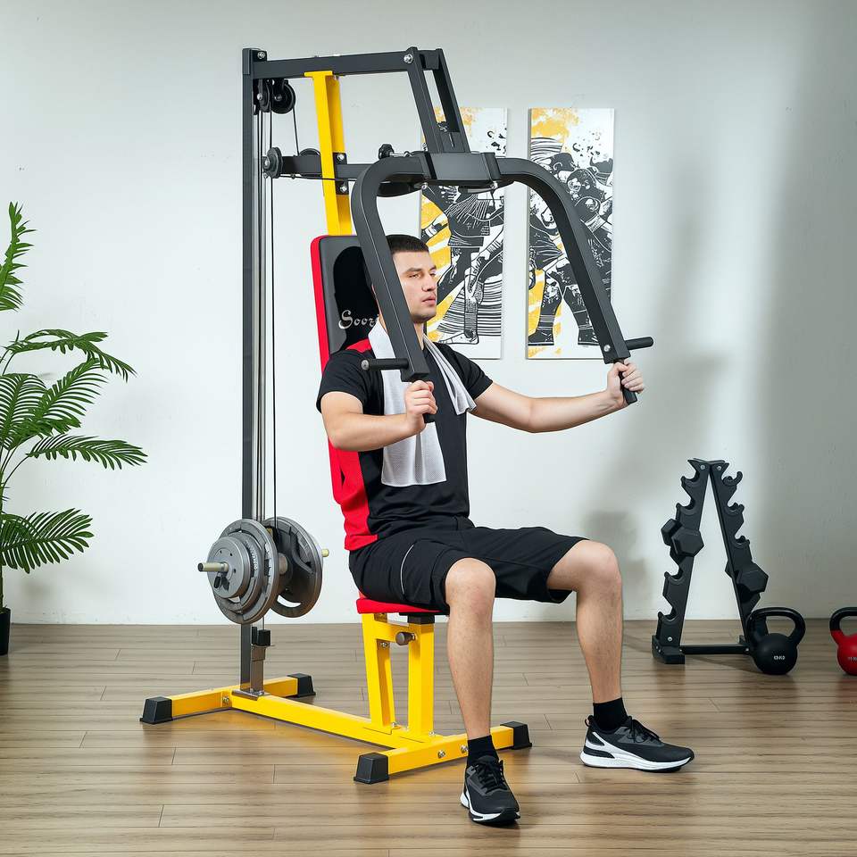 Sistema Giallo per Palestra Domestica con Macchina per Chest Fly e Press per Allenamento di Schiena, Pettorali, Deltoidi Posteriori e Spalle