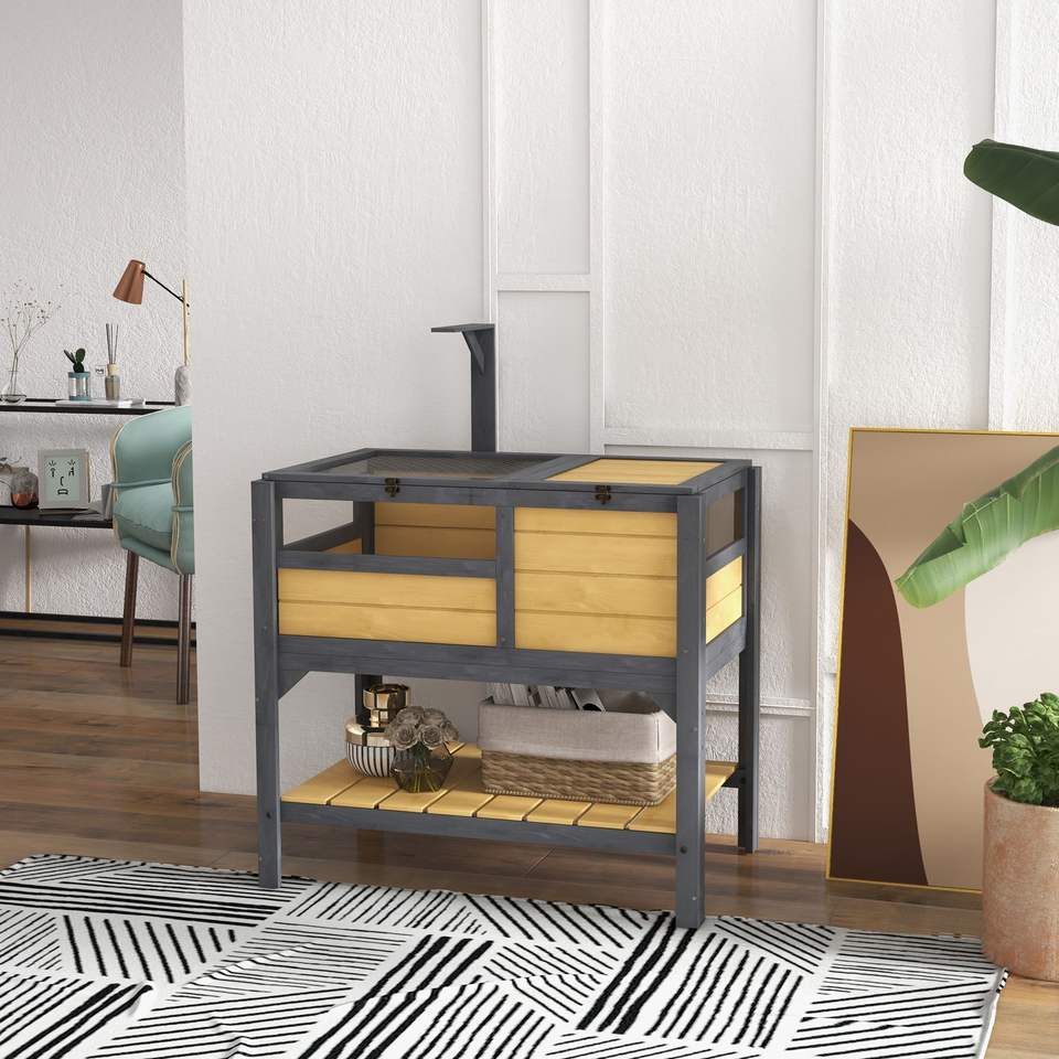 Terrario Giallo per Tartarughe da Interno con Accessorio Protezione dalle Intemperie e Ripiano Portaoggetti, Accessorio per Gabbia per Animali Domestici