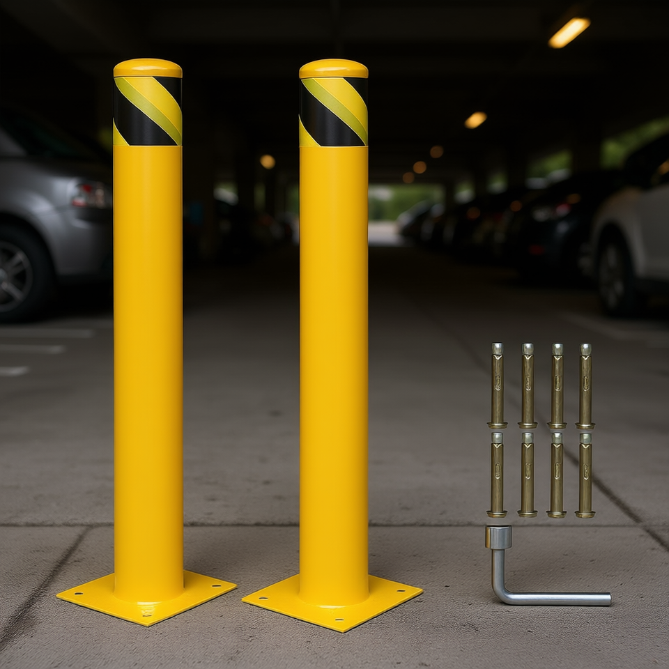 Dissuasore in Acciaio Verniciato a Polvere Giallo da 48 Pollici per Vialetti, Parcheggi e Barriere di Sicurezza Stradale