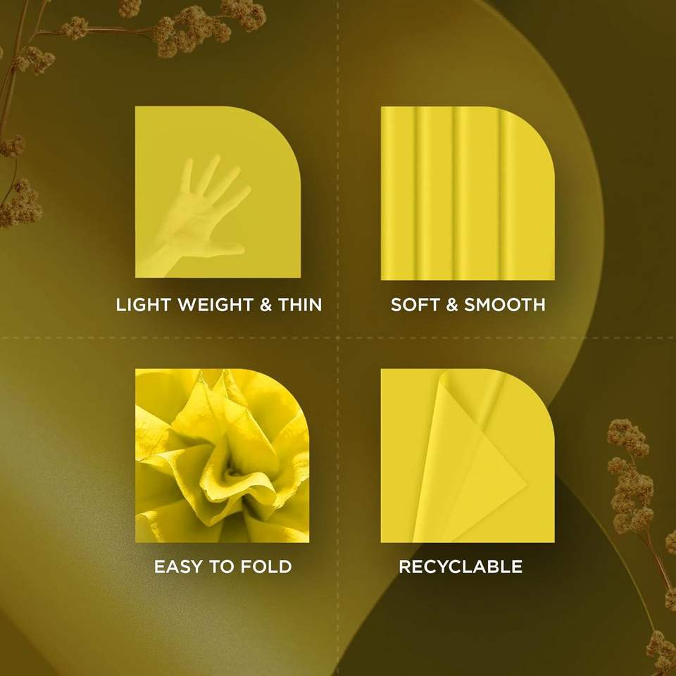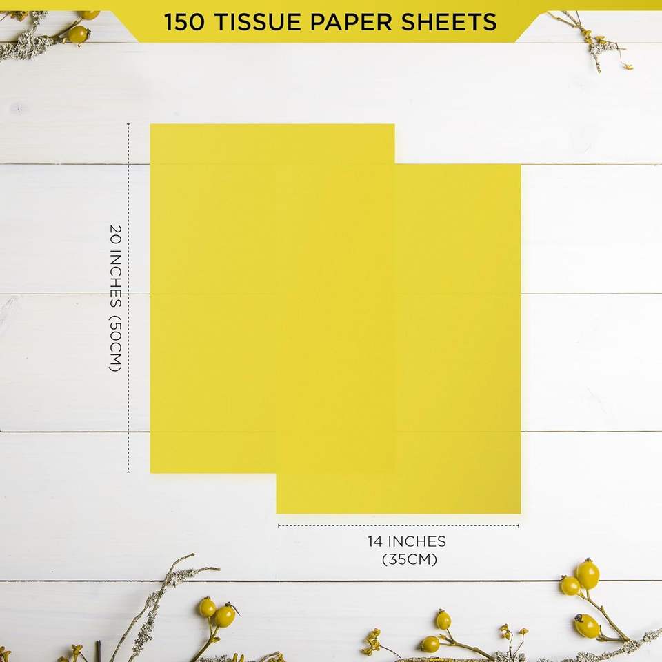 Sacchetti Regalo in Carta Velina Gialla 14x20 Pollici, Carta da Regalo Natalizia 150 Fogli per Decorazioni Festa - Confezioni Regalo per Matrimoni